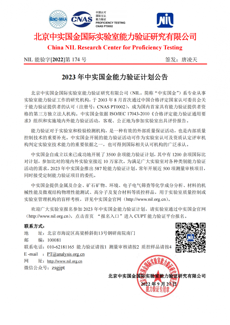 日期:2022-10-08 來源:北京中實國金國際實驗室能力驗證研究有限公司